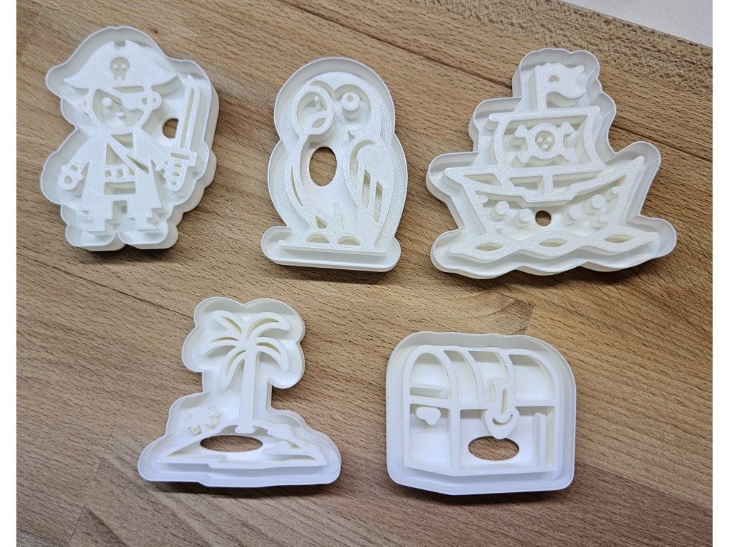 Sada vykrajovátek s pirátskou tematikou pro malé i velké kapitány. Vykrajovátka jsou vyrobena z materiálu PLA, který je šetrný k přírodě a je certifikován pro styk s potravinami. Výrobek není možné čistit v myčce nádobí.